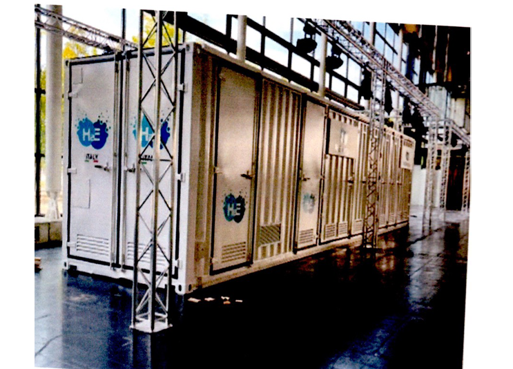 Il primo elettrolizzatore industriale costruito in Italia è stato realizzato nel 2023 a Pizzighettone (Cremona) da parte della H2Energy ed esposto alla Fiera della Tecnologia industriale di Hannover nel 2023. Si tratta di un’apparecchiatura per la produzione di idrogeno attraverso l’elettrolisi dell’acqua alimentata da energia verde di dimensioni contenute (Figura 2) e di potenza di 1 MW realizzata con tecnologia innovativa. Saro Capozzoli, uno dei tre soci della srl, ha dichiarato che è stato realizzato l’elettrolizzatore per produrre idrogeno verde italiano e per non dipendere, anche in questo campo, da strutture e fornitori esteri. Per questo, ha continuato, abbiamo costituito un importante laboratorio di Ricerca & Sviluppo con un team di esperti chimici, ingegneri dei materiali e ricercatori puri di prim’ordine.