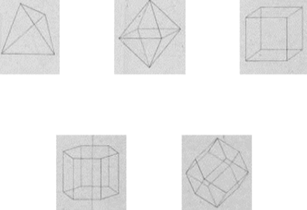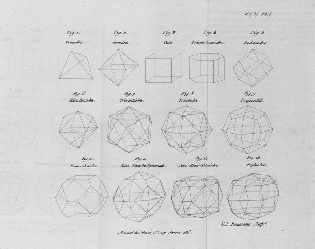 Ampère assume i cinque poliedri delle molécules intégrantes di Renè Just Haüy4 come le più semplici formes représentatives di strutture molecolari (Figura 2).