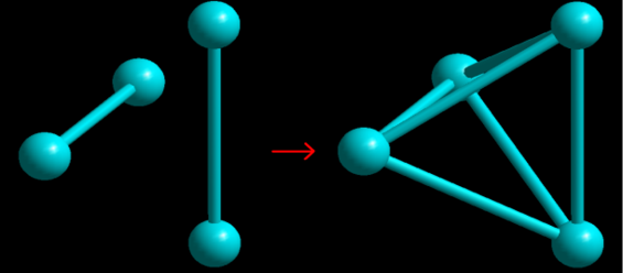 Figura 3. La combinazione di due gruppi bi-atomici danno luogo alla molecola minima tetraedrica