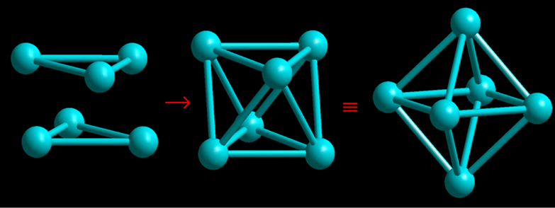 Figura 4. La combinazione di due gruppi tri-atomici danno luogo alla molecola ottaedrica esa-atomica
