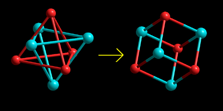 Figura 5. Due molecole tetraedriche si combinano per dare una molecola cubica