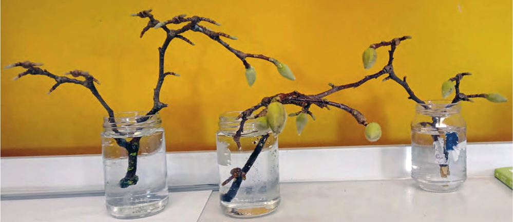 Figura 1. Rametti di magnolia giapponese tenuti in classe e utilizzati per le osservazioni durante il percorso