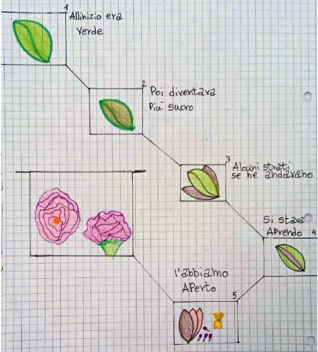 Ora è importante ritornare sulle descrizioni precedenti per riflettere e ricostruire, magari con un diagramma di flusso, i diversi momenti di sviluppo della gemma fiorale (Figura 5). Questo permetterà di comprendere meglio il percorso di maturazione compiuto dalle gemme.
